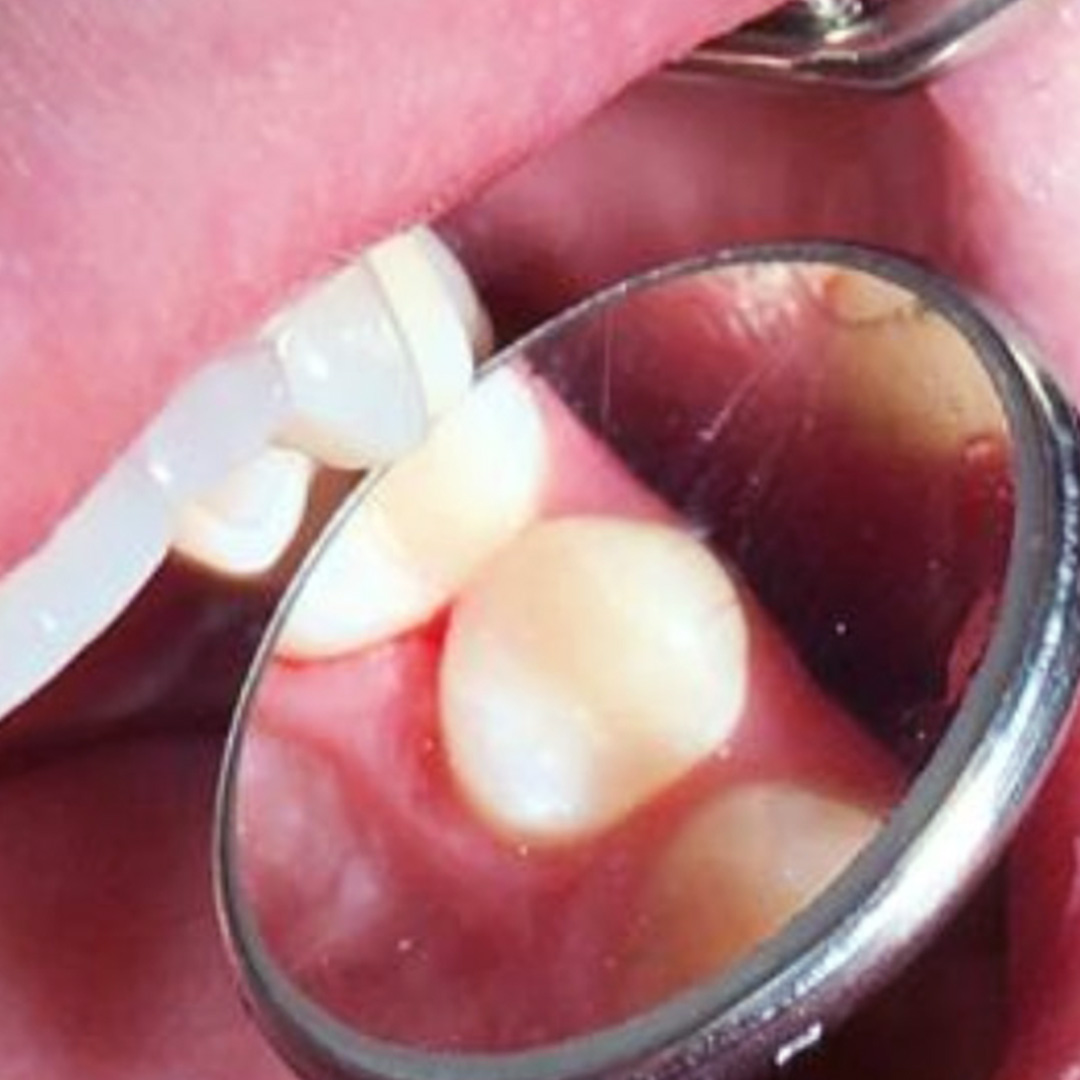 К нам обратился пациент с жалобами на боль в области 24 зуба. Неприятные ощущения беспокоили его во время приёма пищи и при контакте с холодным. Боль носила быстро проходящий характер. Похилько Надежда Геннадьевна провела осмотр и поставила диагноз: глубокий кариес 24 зуба.